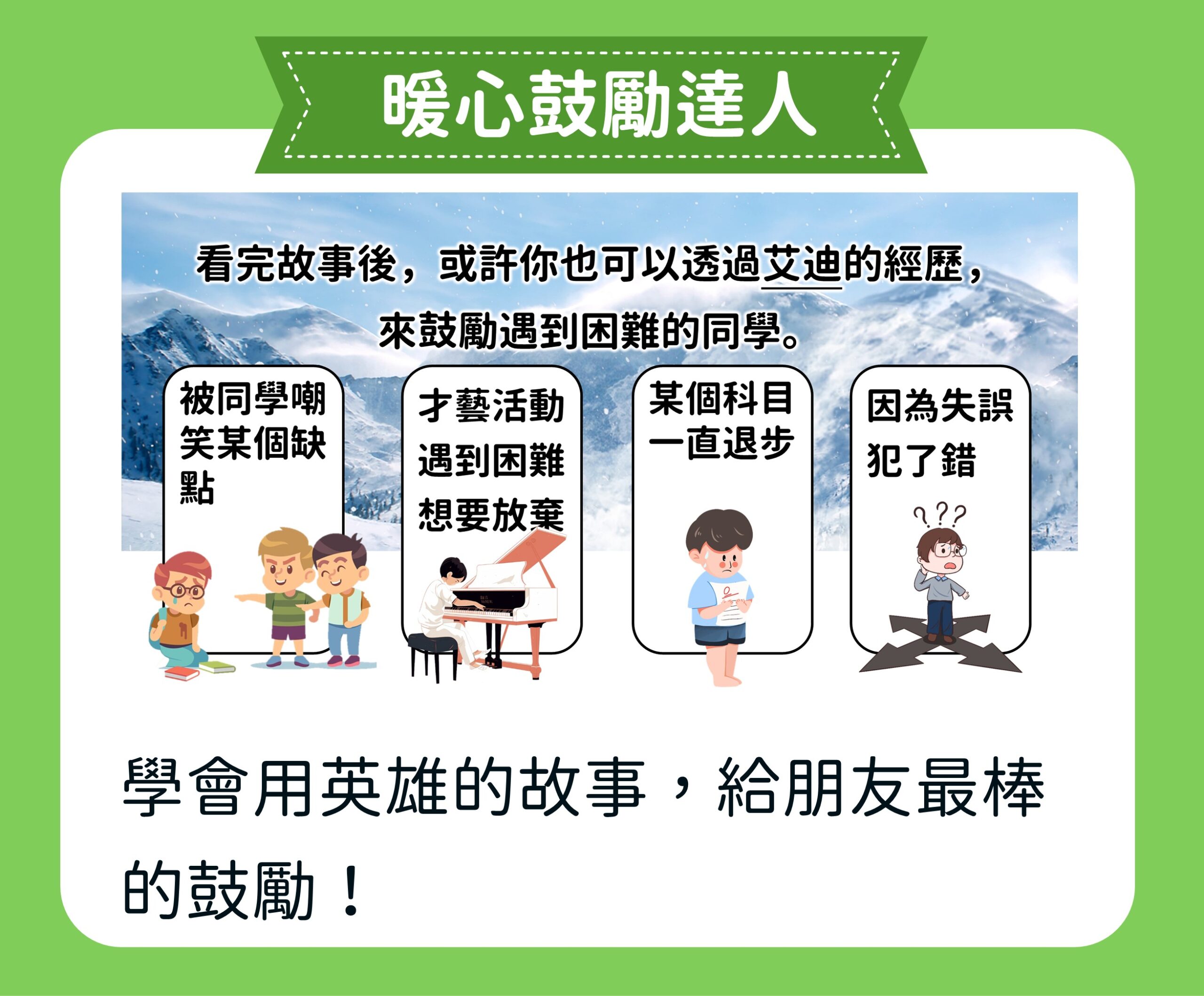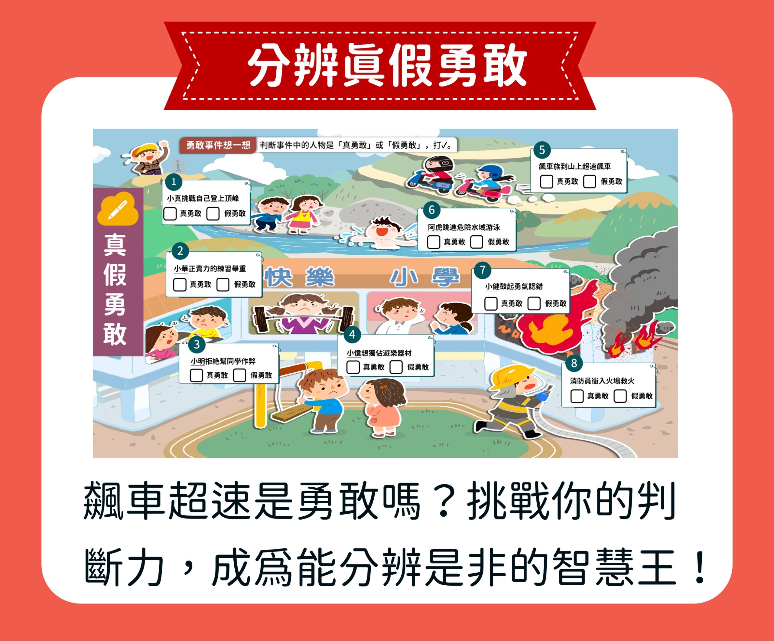 【勇者物語】單元內容,帶領孩子走進消防員、醫生、體育選手的生命裡,思考「勇敢」的內涵,獲得生命的力量,成為內心強大的勇者。