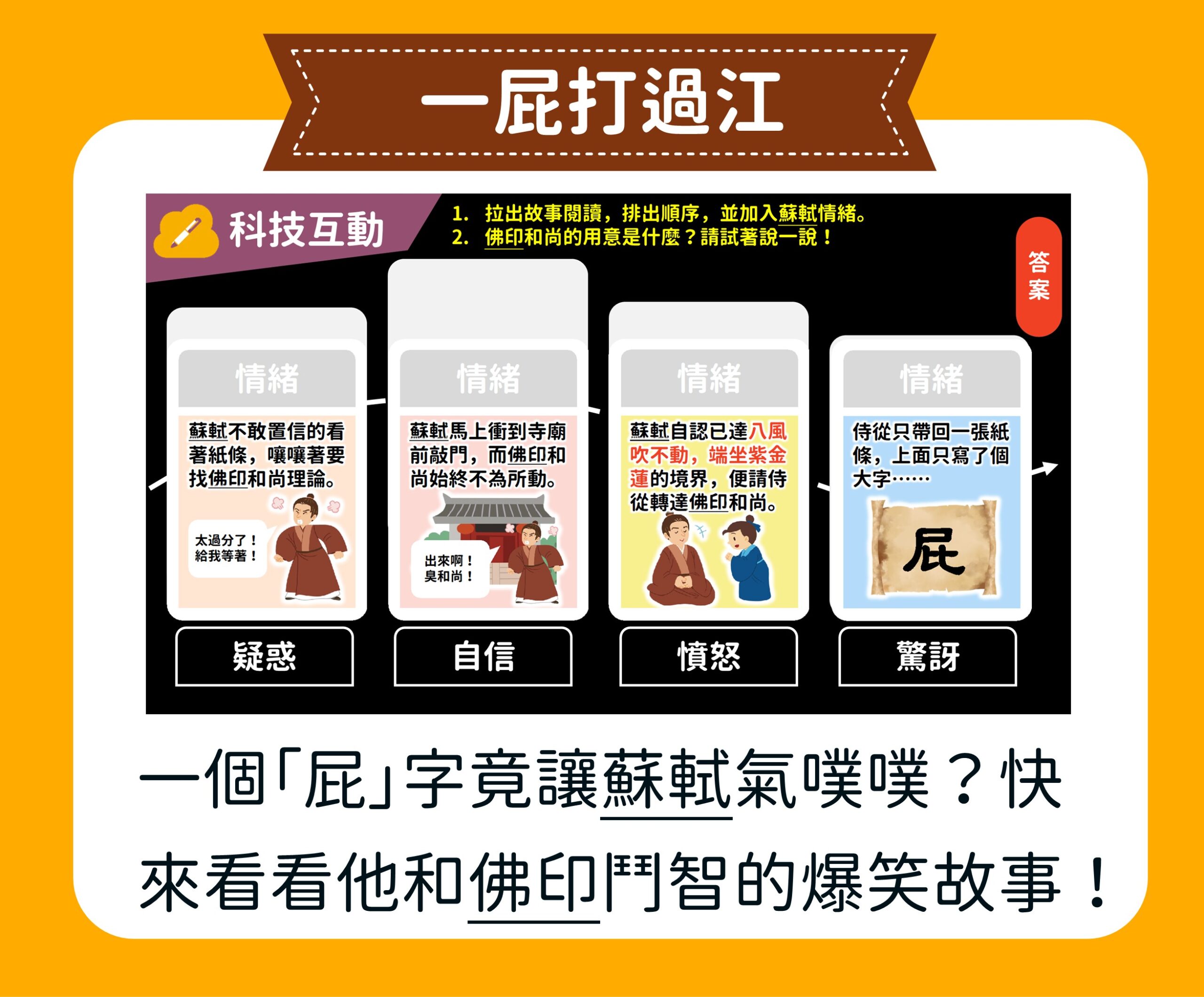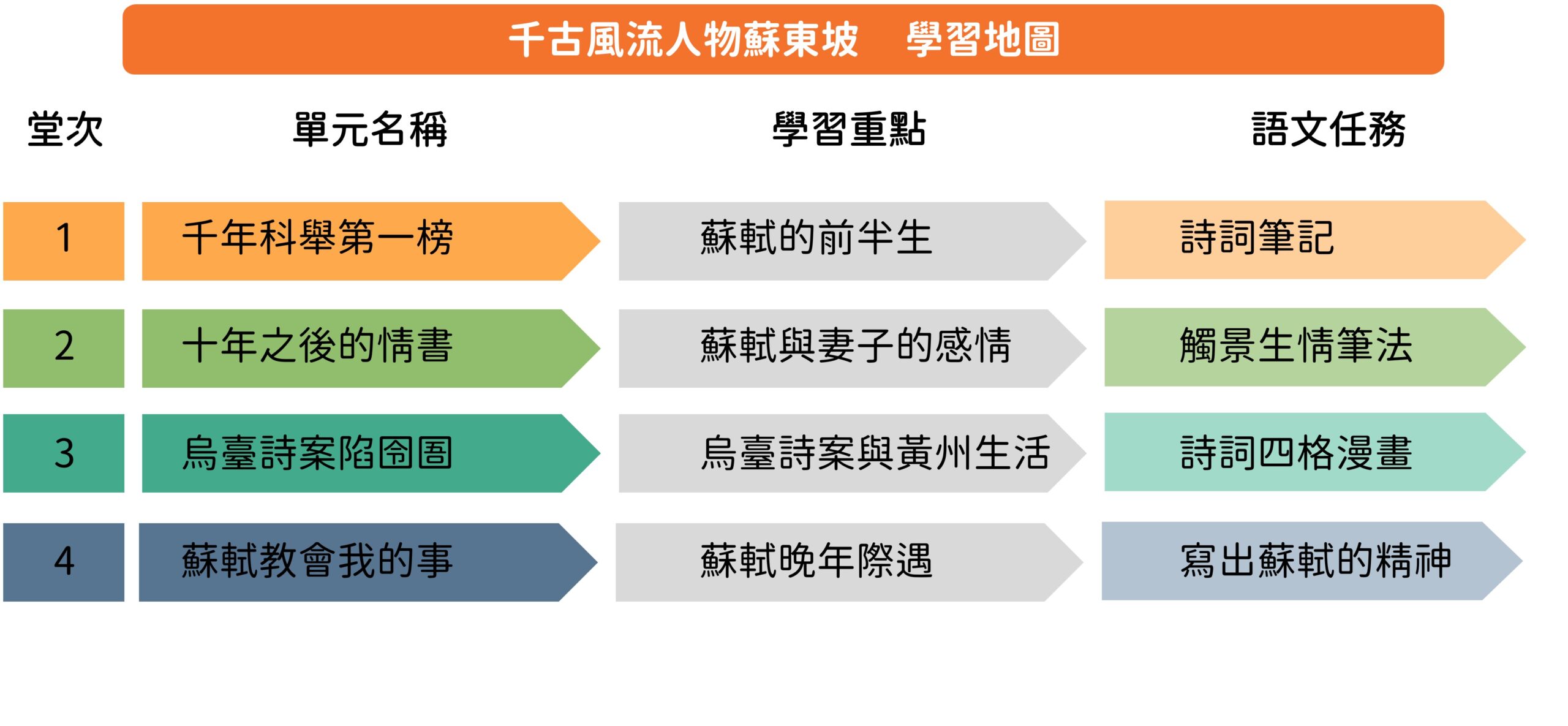 【千古風流人物蘇東坡】單元將帶領孩子認識大文豪蘇軾,我們不只欣賞他的才華,更要學習他面對逆境的豁達與幽默。從他的生命故事與經典作品中,孩子將學會深刻的寫作技巧,並將這份千古風流的智慧,化為自己內心強大的力量。
