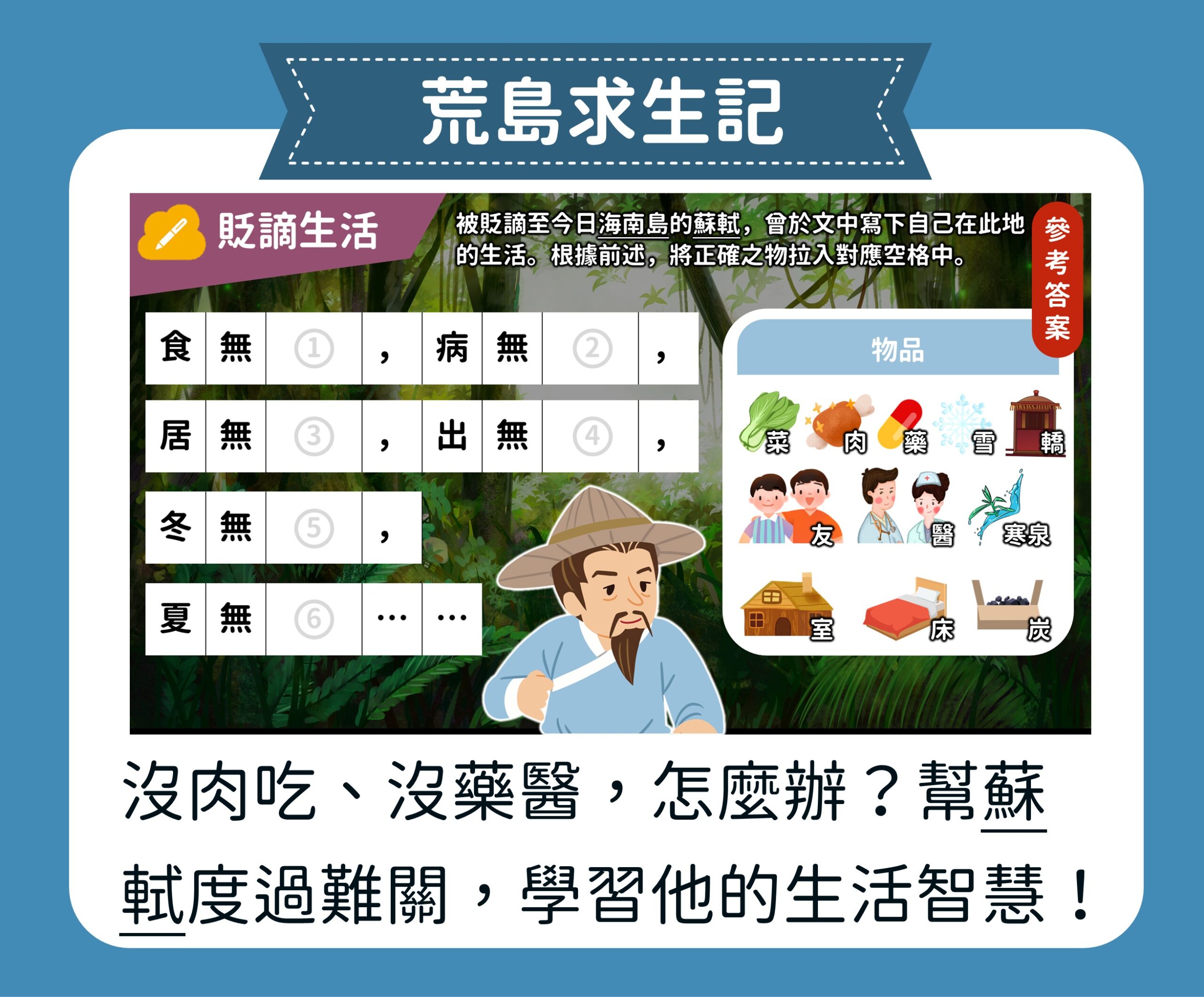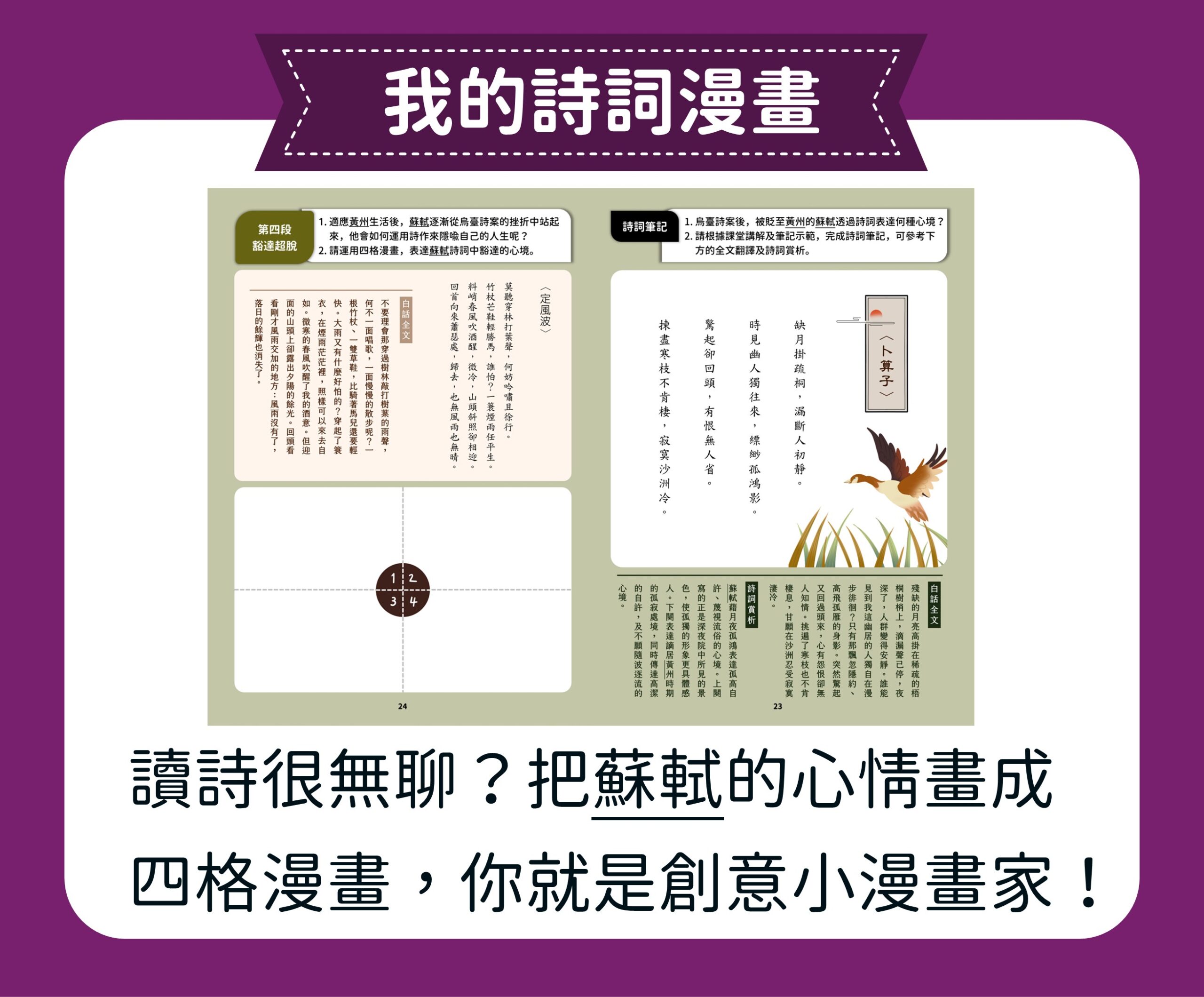 第三堂課「烏臺詩案陷囹圄」:從人生谷底,看見豁達的起點。本堂課將帶孩子將閱讀詩詞,畫出精彩的「四格漫畫」。