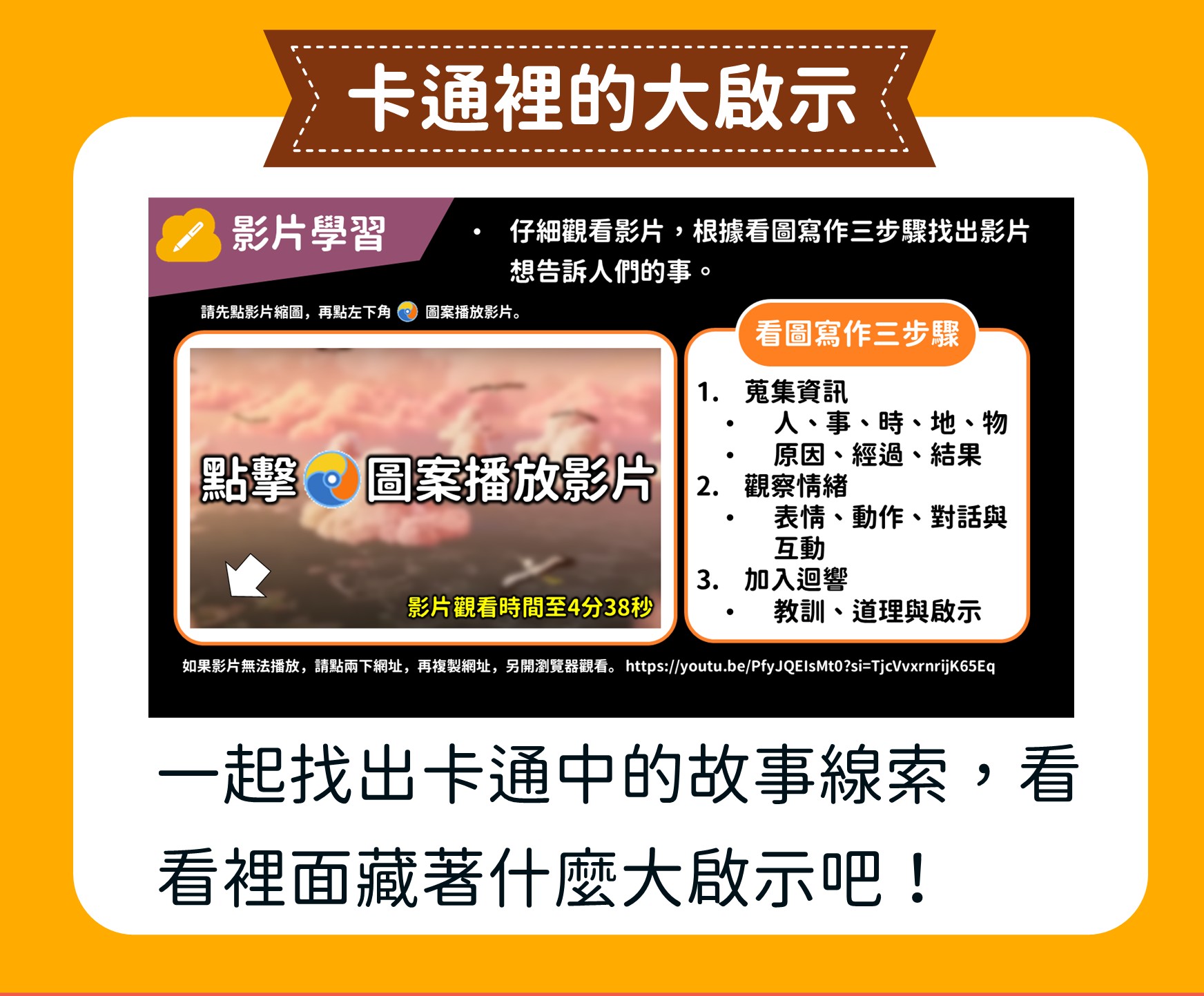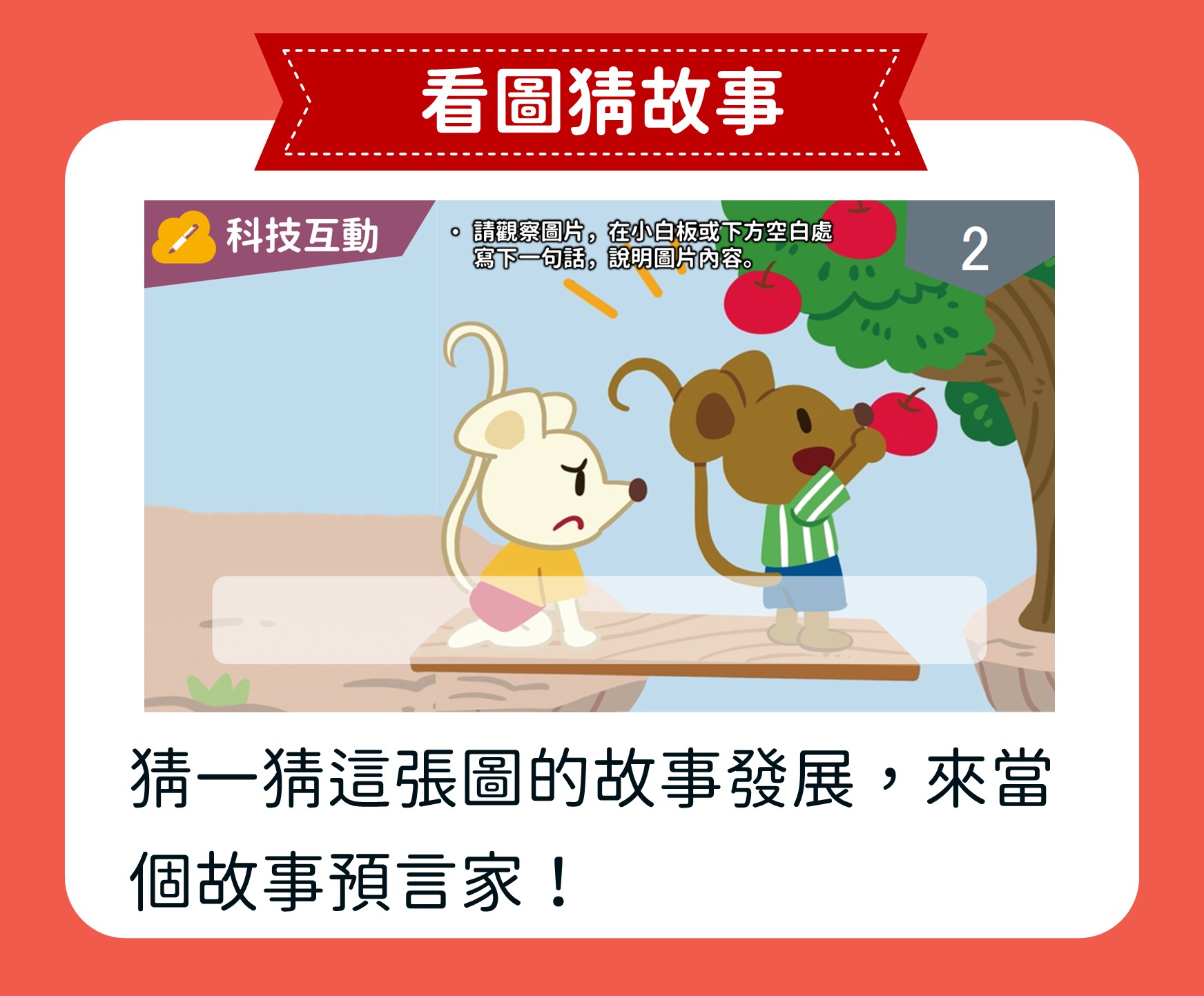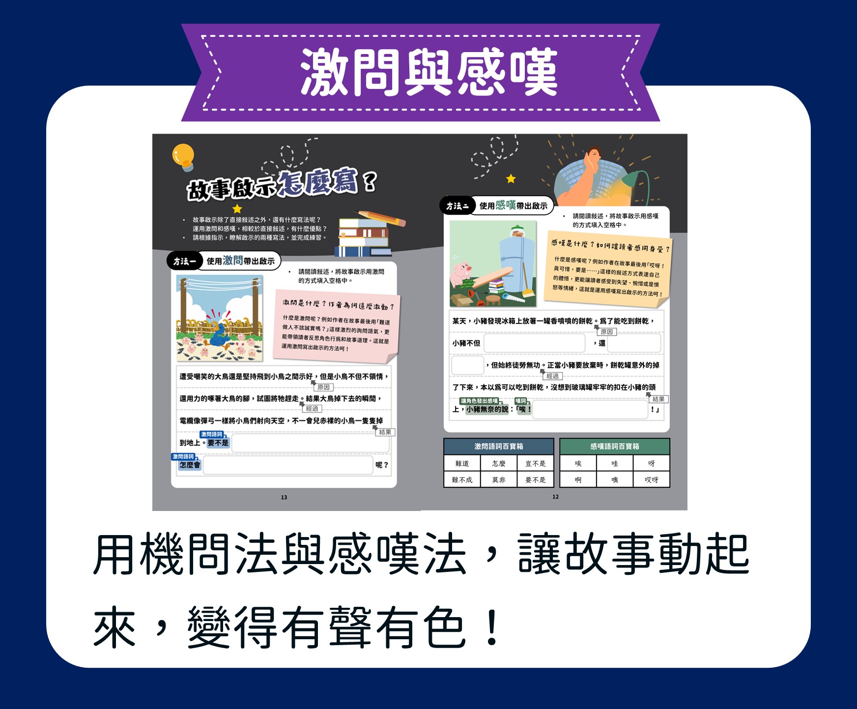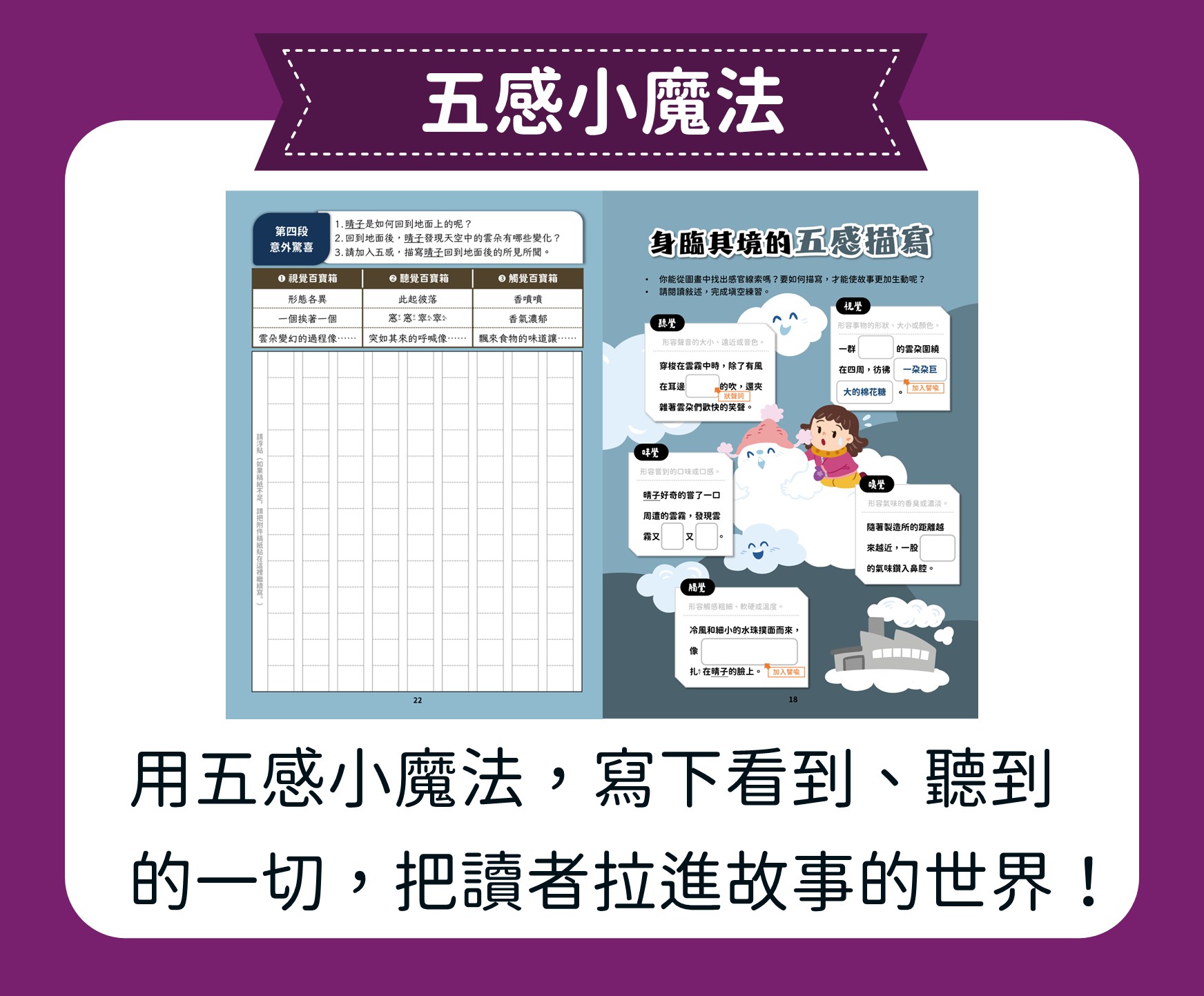 在這堂課程中,孩子將從圖片閱讀與影像觀賞出發,學習把所見所感化為文字,並掌握故事創作的基本要素:人、事、時、地、物。透過五感摹寫與感嘆法的練習,故事變得鮮活生動;最後再加入激問,引導讀者思考與領悟,讓孩子寫出兼具趣味與深度的小故事。