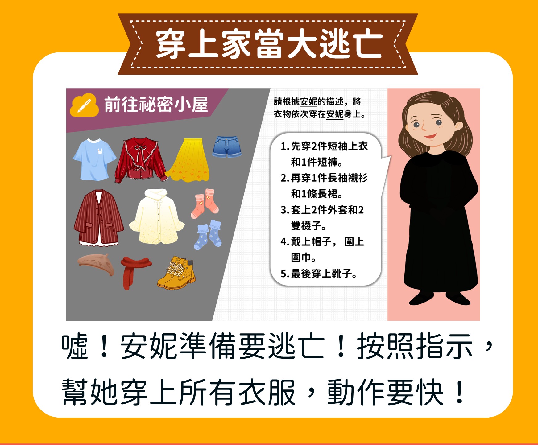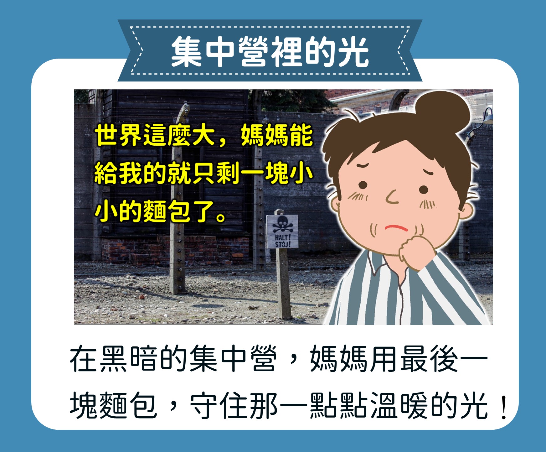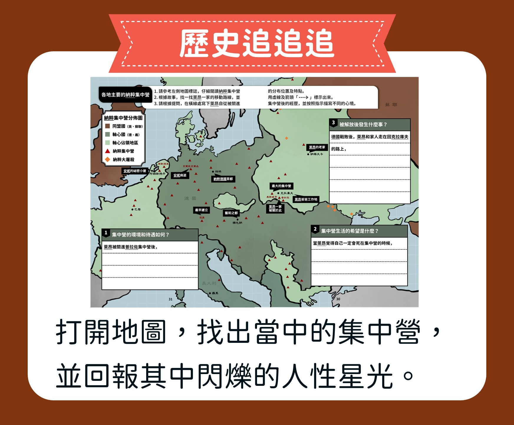 這堂課我們跟孩子一起閱讀《安妮的日記》以及納粹集中營倖存者的故事,從最黑暗的時光中發掘人性最溫暖的一面。進而引導孩子展開一場歷史的思辨,為未來播下讓黑暗沉寂,讓星光閃耀的種子。